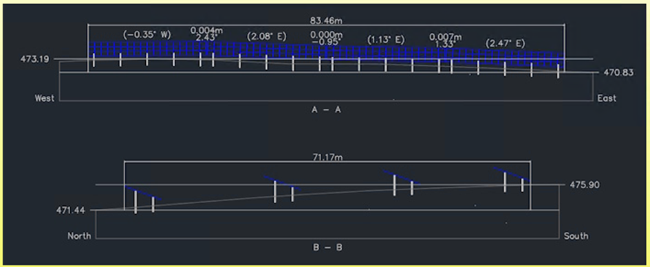Functions for different marker schemes for arrays, posts, modules and surfaces. For each type, intervals can get defined with separate colors for temporary hatches or circles. The snapshot command will change displayed temporary hatches into standard AutoCAD objects.